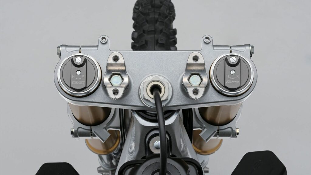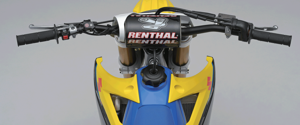 Az alapfelszereltségként felszerelt csúcskategóriájú Renthal Fatbar alumínium kormányrúd erősebb és kevésbé vibrál, mint a hagyományos méretű alumínium kormányrudak.