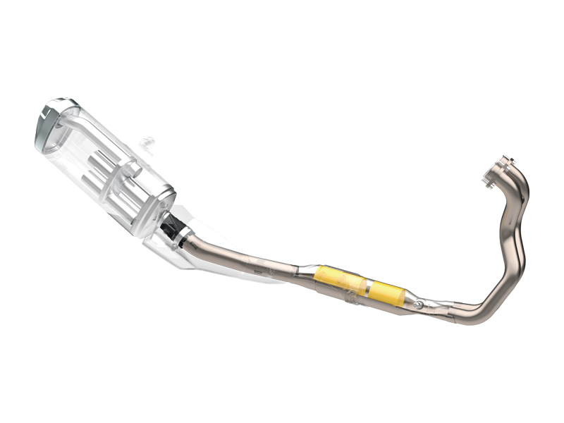 A 2 az 1-ben kipufogórendszer kellemes hangot ad és maximalizálja a teljesítményt, nem csak a nagy sebességű túrák során, de akkor is, amikor lassan, alacsony fordulatszámot tartva haladsz lefelé a kemping ösvényein a parkolóhelyedig. Ami azonban ennél is fontosabb, hogy a kettős katalizátor által a motorblokk megfelel az Euro 5 károsanyag-kibocsátási előírásoknak. A motor felfelé ívelő kipufogója nem csak látványos, de úgy tervezték, hogy ne zavarja a V-STROM 800 hosszú rugóútját.